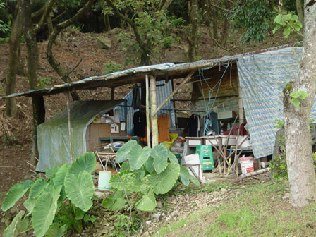 还有那屋檐下悬挂的那一盏沾满泛黄油烟的日光灯,分秒未曾休止的发出吱吱嘎嘎的声响,彷佛摆动的摇篮,使得那发散出来的光线投射在帆布上格外的明亮,从对山遥望过来像似云龙所提的巨大灯笼,是中岭山在开垦时代独特、且极具有纪念价值的建筑物,也是义工们夜晚休歇静坐时,唯一的容身之处。