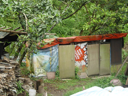 男生可到处方便,这会儿可苦了女生,但天下无难事,只怕有心人,此时决定女士优先搭一个临时厕所。于是义工阿德帮女士们挖一个半身人高的土窝,附设高级挡风布,保证无臭有氧通风十足。如厕时自备小铲子一只、做完蛋糕还可顺势挖一铲土盖在上面掩人眼目,如厕还可做做好事让人眼珠子清静一下,后事自己料理可是功德无量。