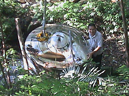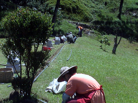 讲师立即发挥他超人的行动力,带着义工群—挖管道、埋水管,一路接了好长好长、又上又下的管路,而最难以想像的是,在那连人走路都惊险的路径下,是如何的在脑力、及绳索及体力的激荡下,将那又圆又重又大的水塔毫发无伤的,让它在数百米外的幽谷下新居落成呢?